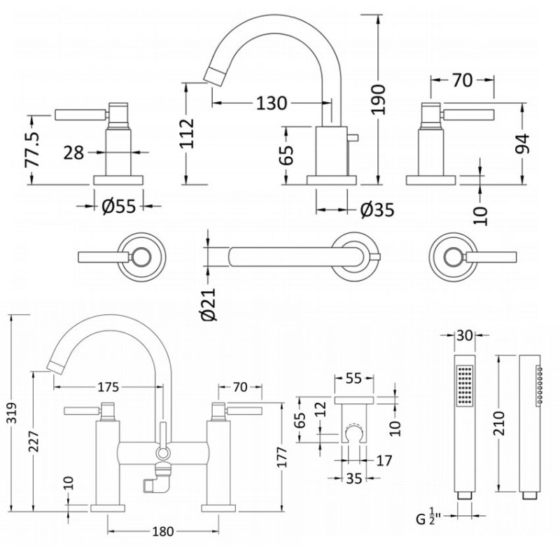 • Comes complete with Basin Waste, Shower Kit & Wall Bracket