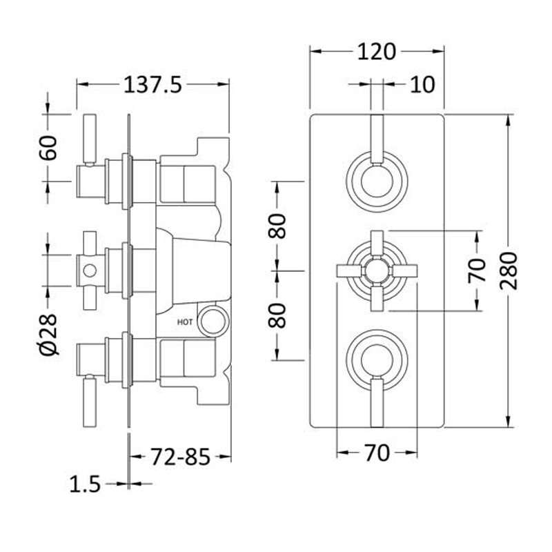 Hudson Reed Tec Pura Concealed Shower Valve Triple Handle - Matt Black | Thumbnail Image Hudson Reed Tec Pura Concealed Shower Valve Triple Handle - Matt Black