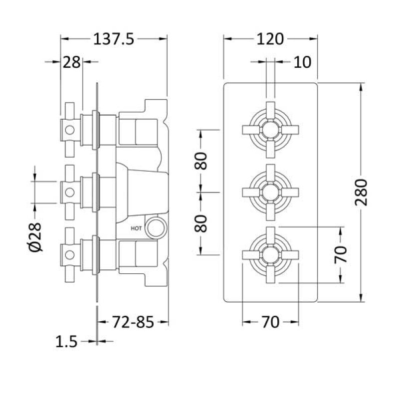 Hudson Reed Tec Crosshead Concealed Shower Valve Triple Handle - Matt Black | Thumbnail Image Hudson Reed Tec Crosshead Concealed Shower Valve Triple Handle - Matt Black