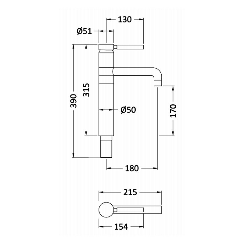 Hudson Reed Tec Tall Basin Mixer Tap - Brushed Brass | Product Image Hudson Reed Tec Tall Basin Mixer Tap - Brushed Brass