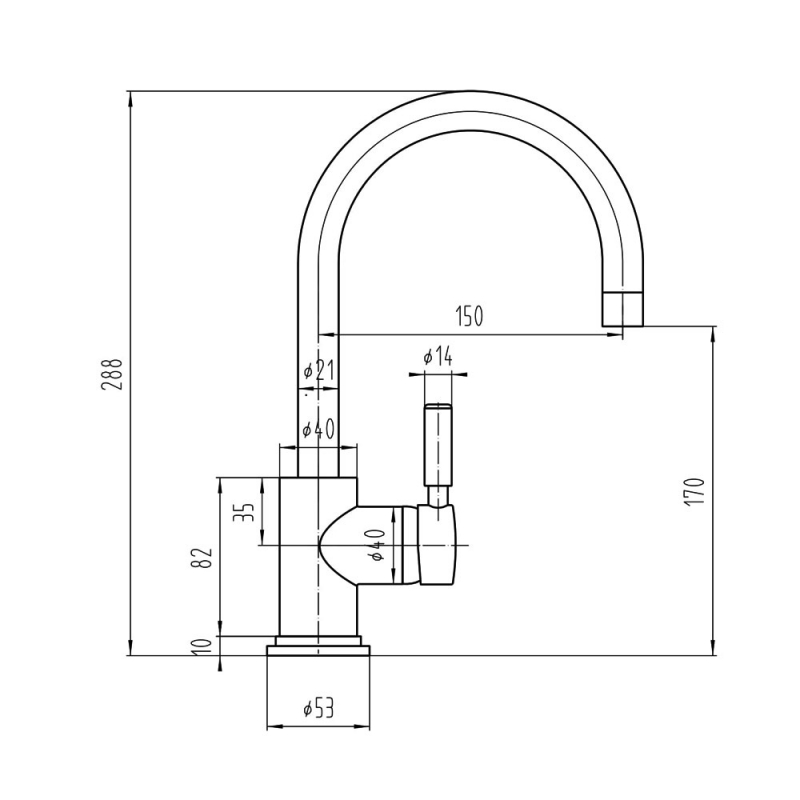Tap Base to Spout 170mm