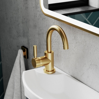 Hudson Reed Tec Single Lever Side Action Mono Basin Mixer Tap with Waste - Brushed Brass | Thumbnail Image Hudson Reed Tec Single Lever Side Action Mono Basin Mixer Tap with Waste - Brushed Brass | Thumbnail Image Hudson Reed Tec Single Lever Side Action Mono Basin Mixer Tap with Waste - Brushed Brass