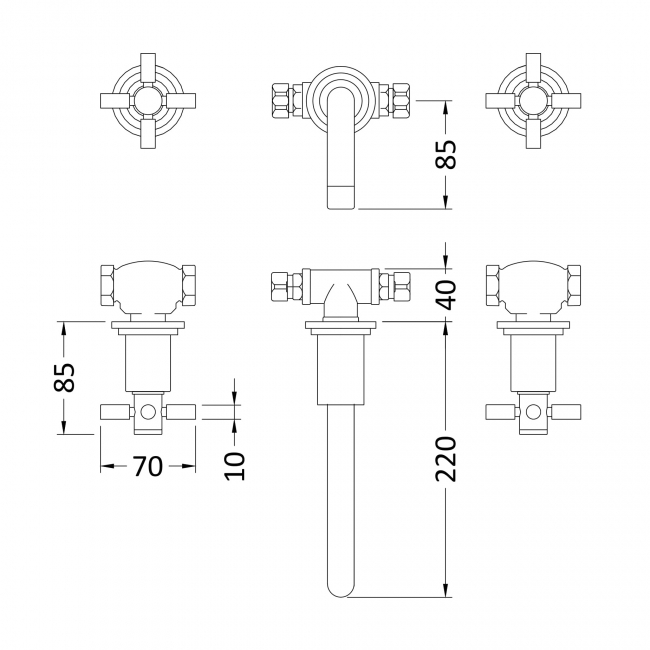 Hudson Reed Tec Crosshead 3-Hole Basin Mixer Tap Wall Mounted - Brushed Brass | Thumbnail Image Hudson Reed Tec Crosshead 3-Hole Basin Mixer Tap Wall Mounted - Brushed Brass