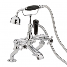 Hudson Reed Topaz Black Crosshead Bath Shower Mixer Tap with Shower Kit Hexagonal Collar