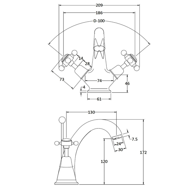 Tap Base to Spout120mm