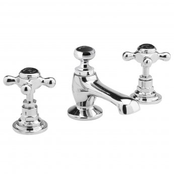 Hudson Reed Topaz Black Crosshead 3-Hole Basin Mixer Tap with Pop Up Waste Hexagonal Collar