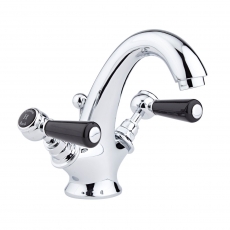 Hudson Reed Topaz Black Lever Mono Basin Mixer Tap Hexagonal Collar with Waste - Chrome