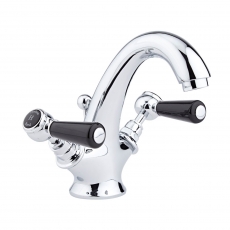 Hudson Reed Topaz Black Lever Mono Basin Mixer Tap Hexagonal Collar with Waste - Chrome