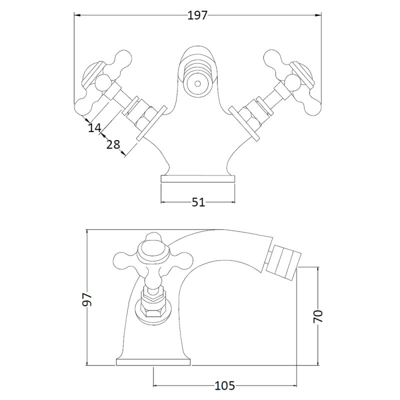 Hudson Reed Topaz Hexagonal Collar Bidet Mixer Tap with Waste Crosshead Handle - White/Chrome