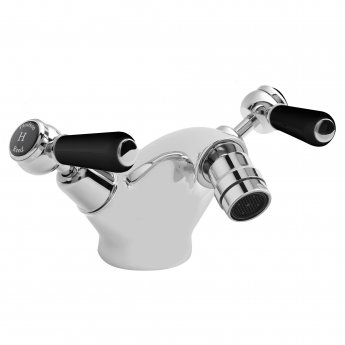 Hudson Reed Topaz Dome Collar Bidet Mixer Tap with Waste Lever Handle - Black/Chrome | Thumbnail Image Hudson Reed Topaz Dome Collar Bidet Mixer Tap with Waste Lever Handle - Black/Chrome
