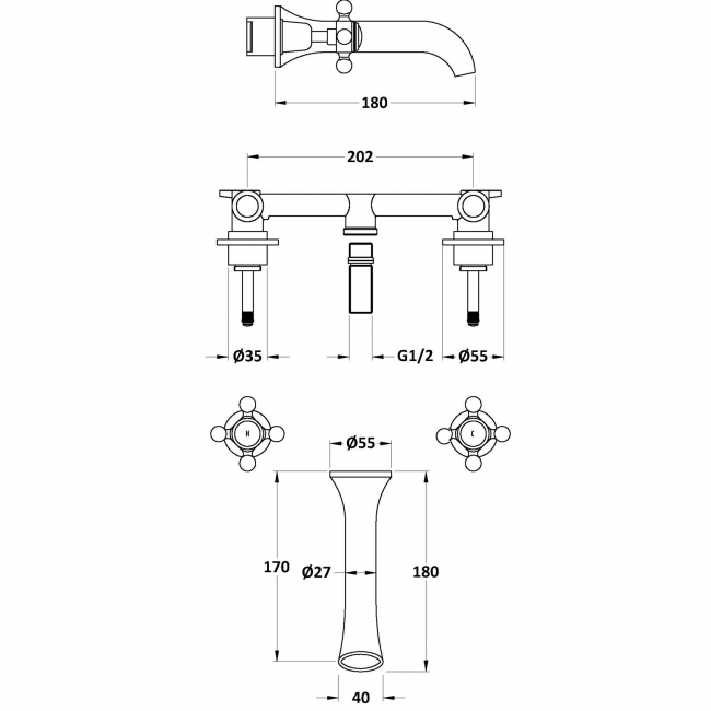 Hudson Reed Black Topaz Wall Mounted Crosshead 3-Hole Basin Mixer Tap - Chrome | Thumbnail Image Hudson Reed Black Topaz Wall Mounted Crosshead 3-Hole Basin Mixer Tap - Chrome | Thumbnail Image Hudson Reed Black Topaz Wall Mounted Crosshead 3-Hole Basin Mixer Tap - Chrome