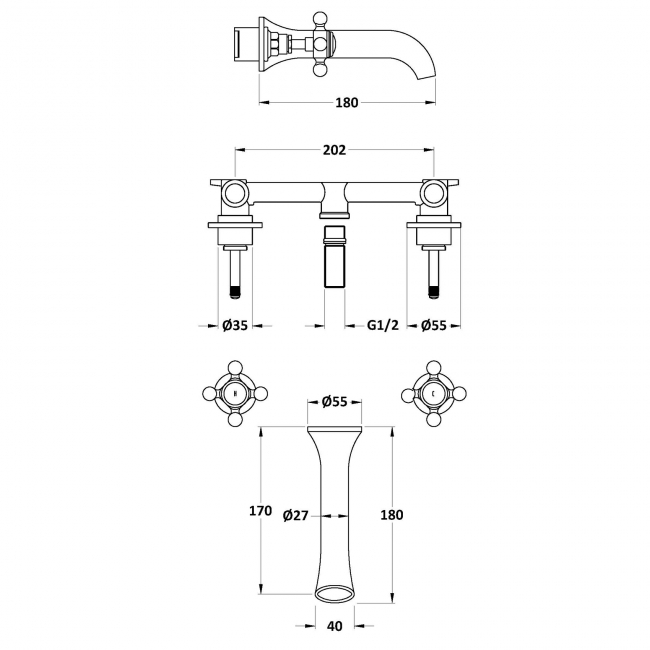 Hudson Reed Black Topaz Crosshead 3-Hole Basin Mixer Tap Wall Mounted - Chrome | Thumbnail Image Hudson Reed Black Topaz Crosshead 3-Hole Basin Mixer Tap Wall Mounted - Chrome | Thumbnail Image Hudson Reed Black Topaz Crosshead 3-Hole Basin Mixer Tap Wall Mounted - Chrome