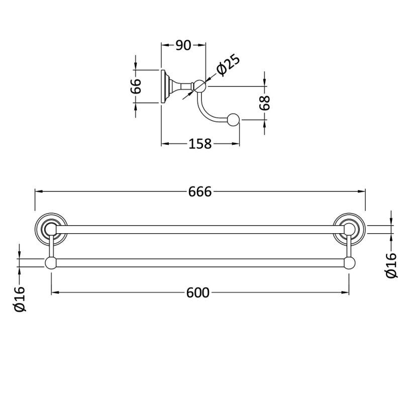 Hudson Reed Traditional Double Towel Rail - Chrome | Thumbnail Image Hudson Reed Traditional Double Towel Rail - Chrome