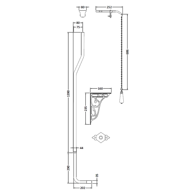 Hudson Reed Traditional High Level Toilet Flush Pipe Pack - Chrome | Product Image Hudson Reed Traditional High Level Toilet Flush Pipe Pack - Chrome