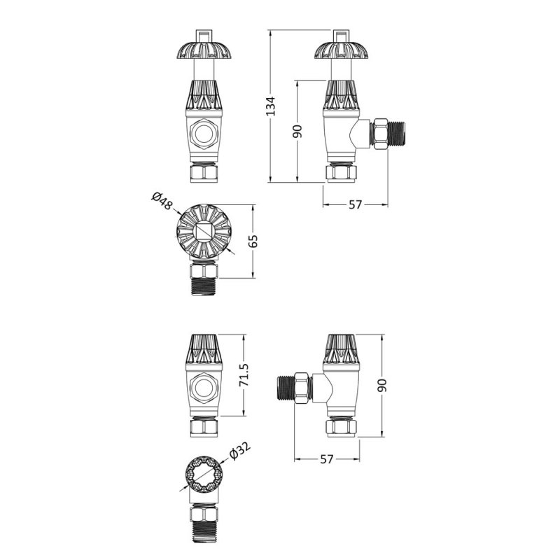 Hudson Reed Traditional Angled Thermostatic Radiator Valves Pair Lockshield - Antique Brass | Thumbnail Image Hudson Reed Traditional Angled Thermostatic Radiator Valves Pair Lockshield - Antique Brass