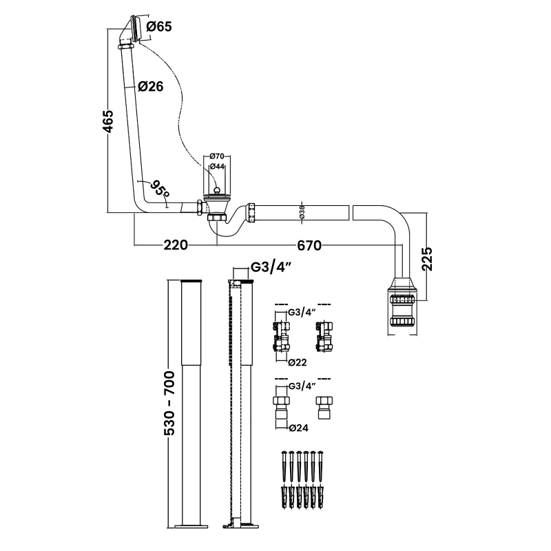 • Includes exposed bath retainer waste shallow seal trap & bath legs with adjustable shrouds