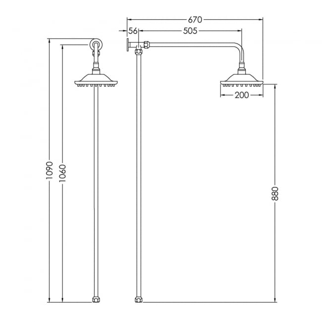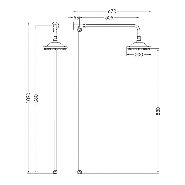- Comes complete with 6 inch traditional Round shower head and Shower Riser Kit