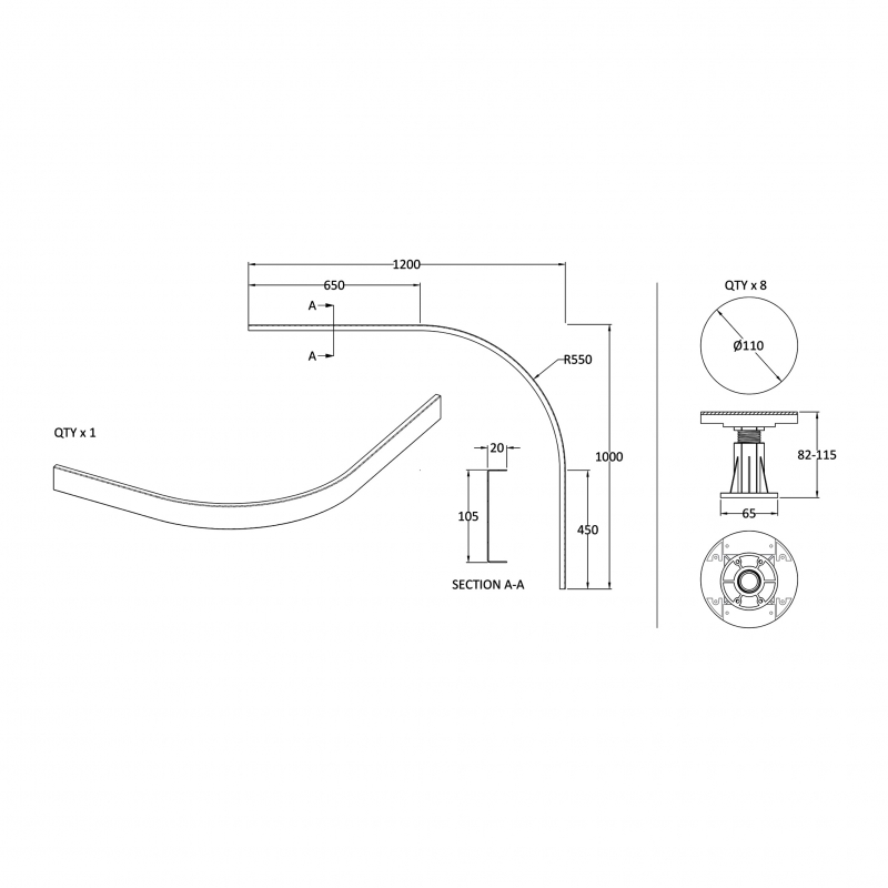 • Suitable for use with 1000mm to 1200mm Quadrant and Offset Quadrant Trays