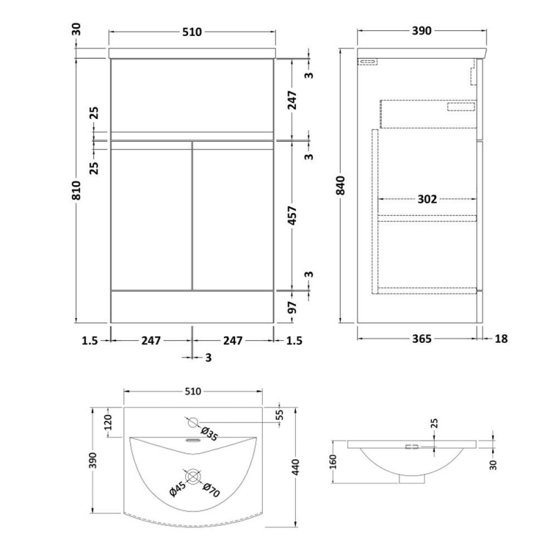 - Vanity unit supplied rigid - no assembly required on the carcass/cabinet