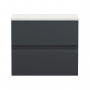 Hudson Reed Urban Wall Hung 2-Drawer Vanity Unit with Sparkling White Worktop 600mm Wide - Satin Anthracite
