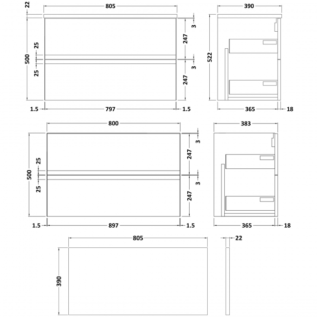 • Cabinet carcass manufactured from 18mm MFC with 18mm MDF fascias (door/drawer fronts)