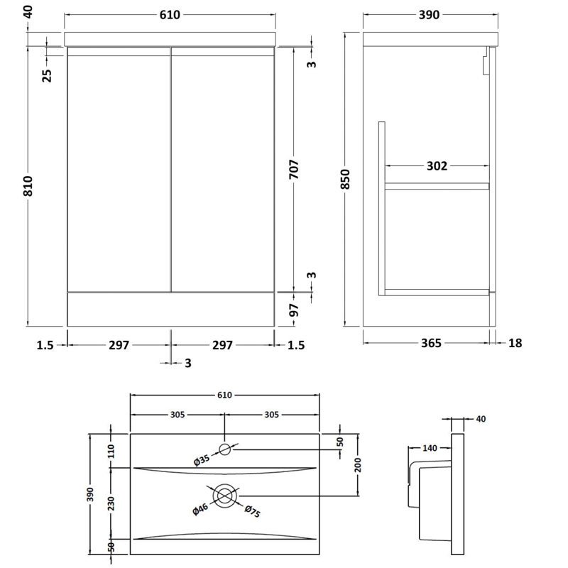 - Vanity Unit and Basin only - taps, traps and waste are sold separately