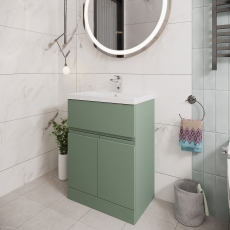 Hudson Reed Urban 600mm 2-Door 1-Drawer Floor Standing Vanity Unit - Satin Green - Mid-Edge
