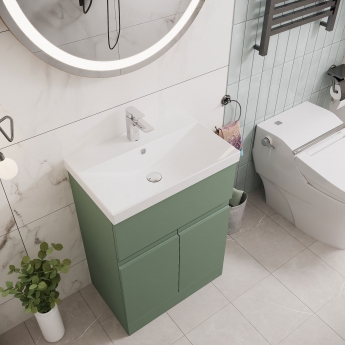 Hudson Reed Urban 600mm 2-Door 1-Drawer Floor Standing Vanity Unit - Satin Green - Thin-Edge