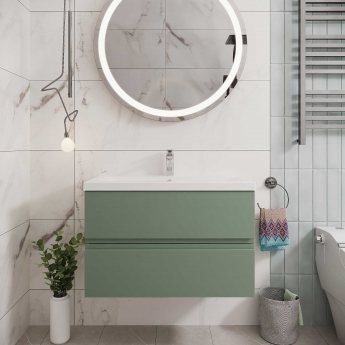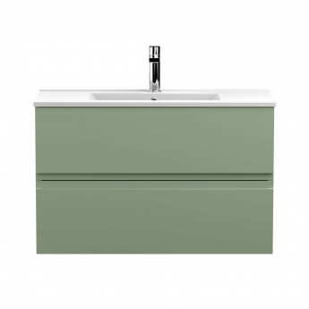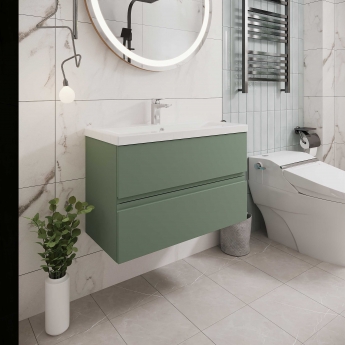 Hudson Reed Urban Wall Hung 2-Drawer Vanity Unit with Basin 2 Satin Green - 800mm Wide