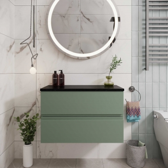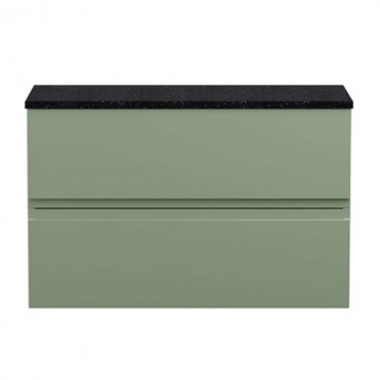 Hudson Reed Urban 800mm 2-Drawer Wall Hung Vanity Unit with Countertop - Satin Green - Black Sparkle