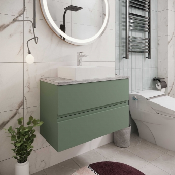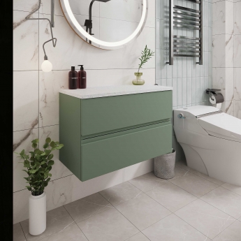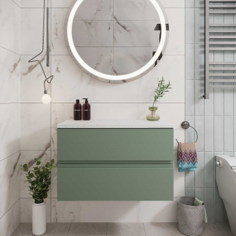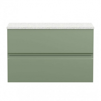 Hudson Reed Urban 800mm 2-Drawer Wall Hung Vanity Unit with Countertop - Satin Green - White Sparkle