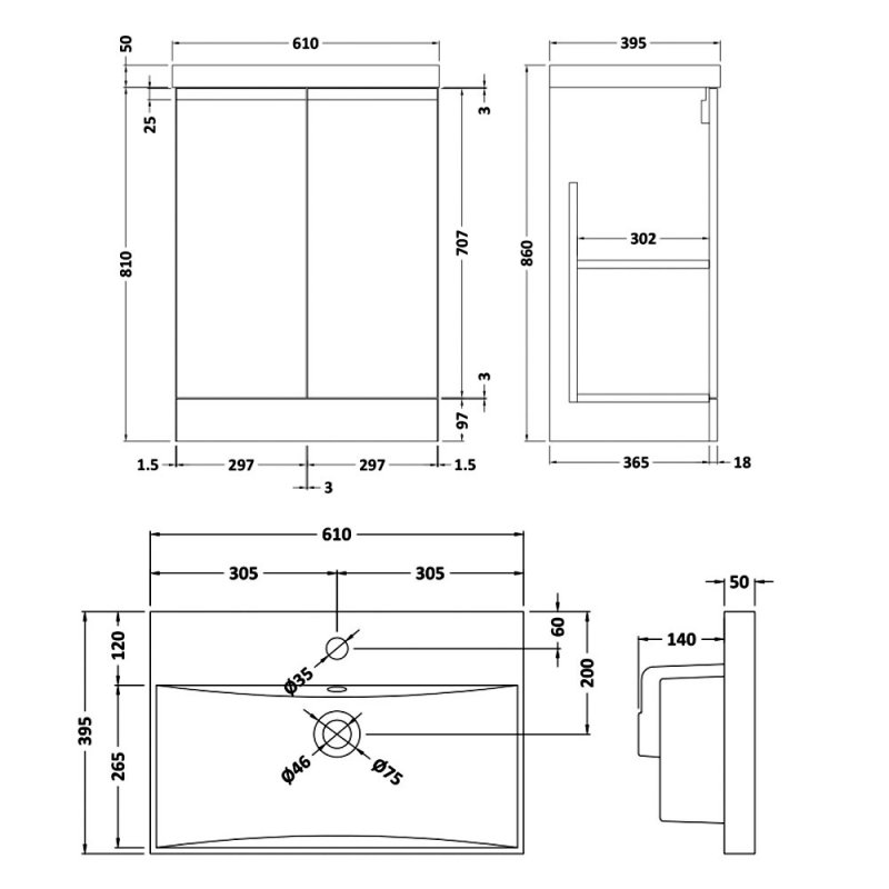 - Vanity Unit and Basin only - taps, traps and waste are sold separately
