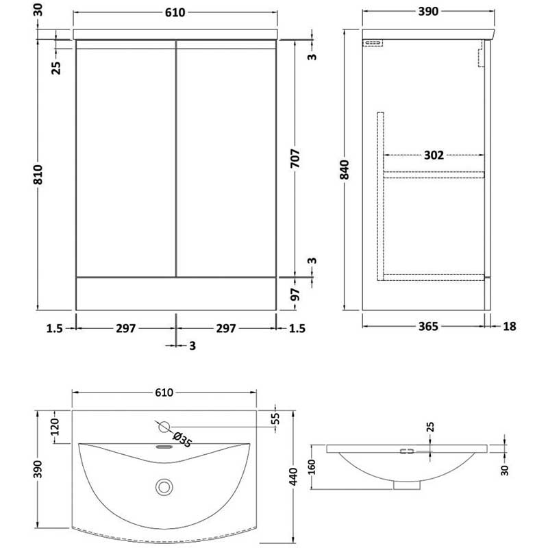 • Vanity unit supplied rigid - no assembly required on the carcass/cabinet