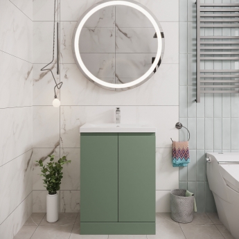 Hudson Reed Urban Floor Standing 2-Door Vanity Unit with Basin 4 Satin Green - 600mm Wide