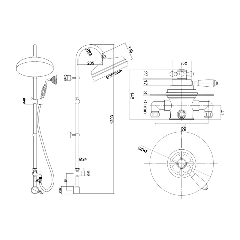 • Comes complete with Shower valve, Round shower head, Shower handset, Shower hose and Concealed elbow