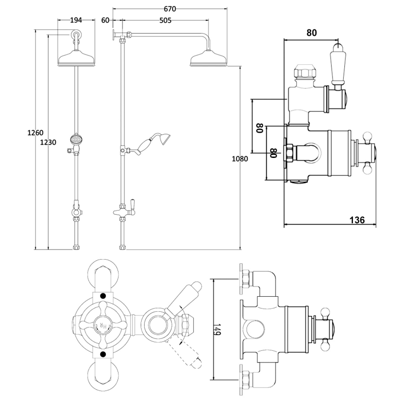 - Comes complete with Rigid Riser Kit, Shower Valve, Shower Head, Shower Handset, Shower Hose and Shower Arm