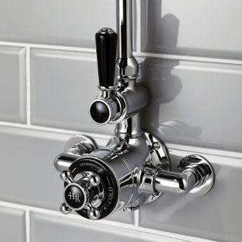The Hudson Reed Topaz Black Grand Rigid Riser Kit with Exposed Twin Valve is a model from the Topaz Black range of shower kits introduced by Hudson Reed. Distinct ceramic control dial of this kits brings substantial elegance to the modern bathroom. Delivering excellent flow rates - even at low pressure, this traditional shower valve provides full thermal protection to prevent scalding in the event of hot or cold water failure.