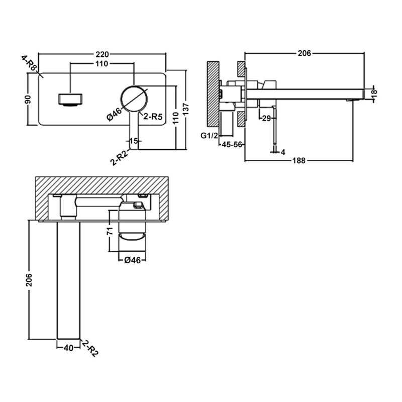 Hudson Reed Willow Single Lever Basin Mixer Tap Wall Mounted - Chrome | Thumbnail Image Hudson Reed Willow Single Lever Basin Mixer Tap Wall Mounted - Chrome
