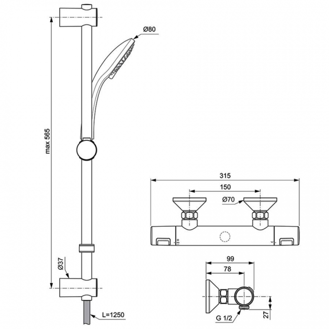 Ideal Standard Ceratherm T25 Thermostatic Bar Shower Mixer with Shower Kit - Chrome | Thumbnail Image Ideal Standard Ceratherm T25 Thermostatic Bar Shower Mixer with Shower Kit - Chrome | Thumbnail Image Ideal Standard Ceratherm T25 Thermostatic Bar Shower Mixer with Shower Kit - Chrome