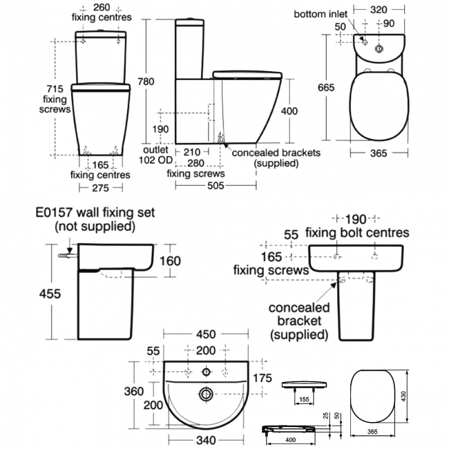 Ideal Standard Concept Bathroom Cloakroom Suite Close 1 Tap Basin White