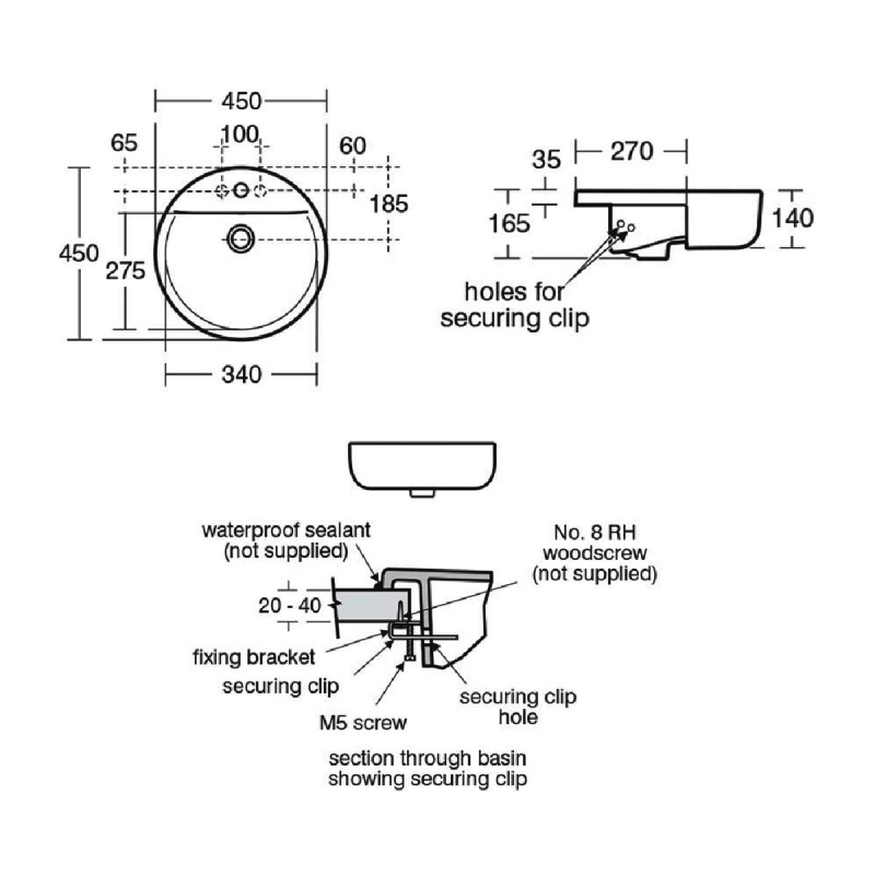 • Single-hole basin suitable for a standard mono basin mixer tap