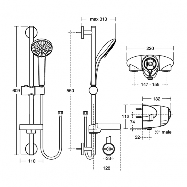 Ideal Standard CTV Thermostatic Exposed Shower Mixer Slide Rail Kit - Chrome | Thumbnail Image Ideal Standard CTV Thermostatic Exposed Shower Mixer Slide Rail Kit - Chrome