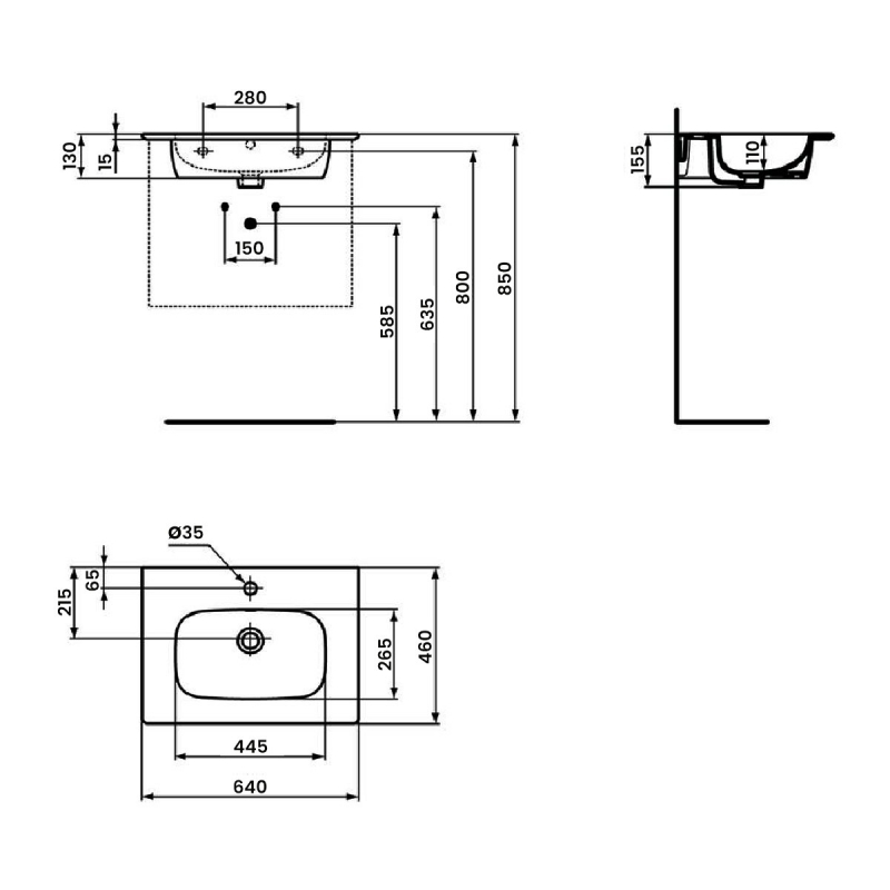 • Single-hole basin suitable for a standard mono basin mixer tap