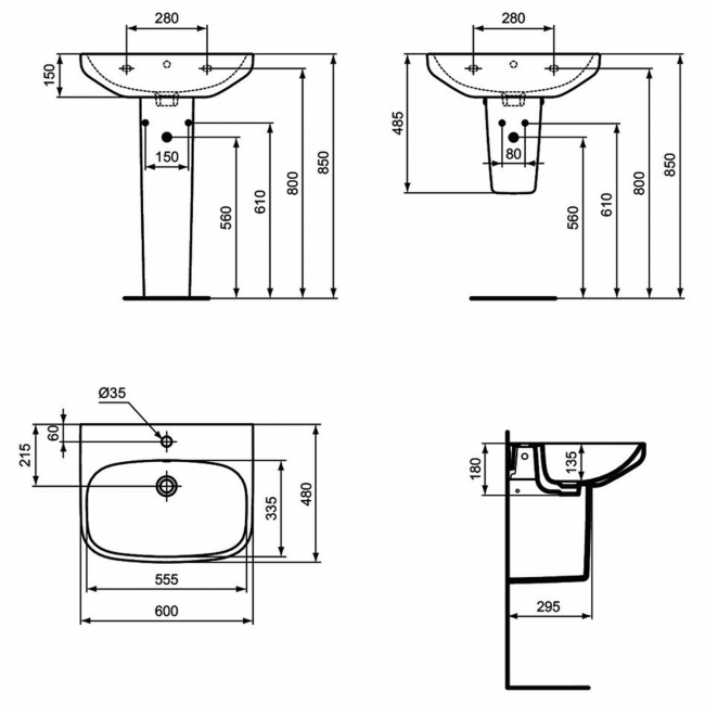 Basin Total Height 850mm