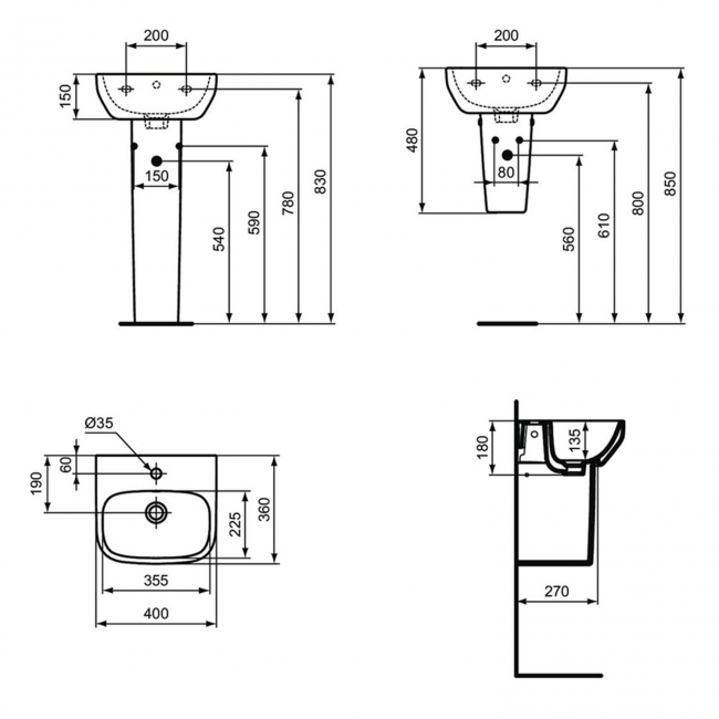 Ideal Standard I.Life A Basin and Full Pedestal 400mm Wide - 1 Tap Hole | Thumbnail Image Ideal Standard I.Life A Basin and Full Pedestal 400mm Wide - 1 Tap Hole | Thumbnail Image Ideal Standard I.Life A Basin and Full Pedestal 400mm Wide - 1 Tap Hole