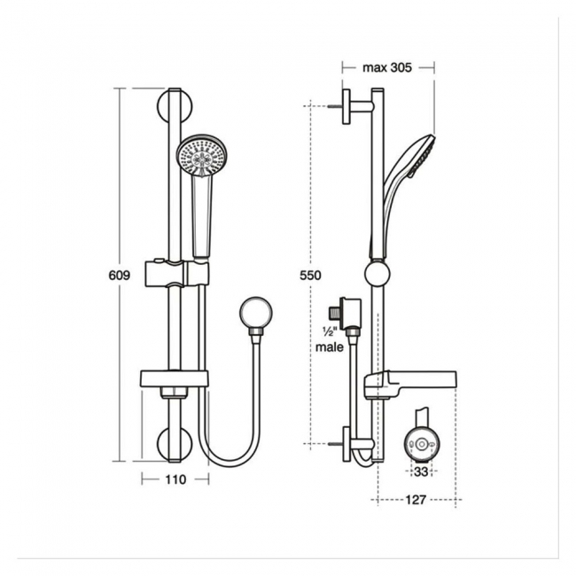 Ideal Standard IdealRain S3 Slider Shower Rail Kit with 3 Function Shower Handset - Chrome