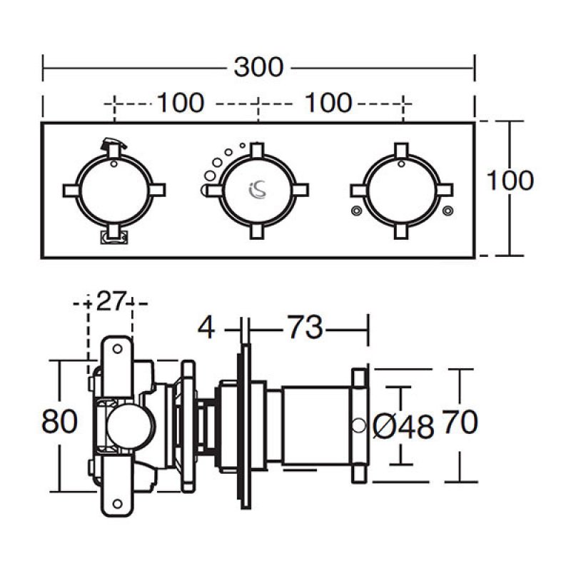Ideal Standard Trevi Aposta TT Concealed Thermostatic Bath Shower Mixer Valve 3 Outlet - Chrome | Thumbnail Image Ideal Standard Trevi Aposta TT Concealed Thermostatic Bath Shower Mixer Valve 3 Outlet - Chrome