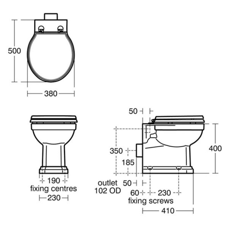 - Standards: Vitreous china to BS3402, WC pan to BS EN 997 and BS EN 33