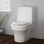 - Close coupled toilet with horizontal pipe outlet