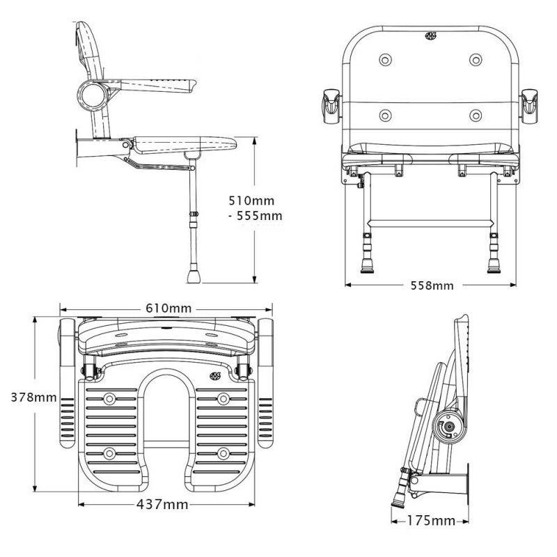 The Impey Deluxe Fold-Down Horseshoe Padded Shower Seat with Back and Arms is not only robust, but has a durable, powder-coated frame. With the ability to fit the Impey Deluxe Fold-Down Horseshoe Padded Shower Seat with Back and Arms at varying heights, it is easy to customise the shower room for any disabled showering needs. What's more, this Impey Shower Seat is able to hold a maximum weight of 25 stone (160kg).